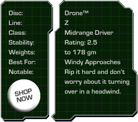 "This disc is exactly what the power players needs: great resistance to turn and a hard, predictable finish. The Drone just loves being thrown with authority."