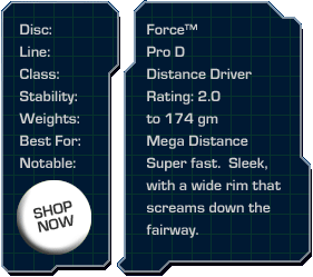 "With enough stability and speed to make a very controllable shot in a ultra fast distance driver, Force will make anyone with a little arm speed a very happy disc golfer. Now I have my big driver to throw on long holes and not need massive amounts of open airspace to control and get a long flight."