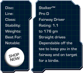 Stalker: 2009 driver of the year! Whether you're throwing hard or soft, Stalker™ is a straight flier that won't turn over unless you want it to. Forgives small release errors and produces a gentle finish with soft landings that won't skip away from the target on impact. Like a Buzzz with driver distance.