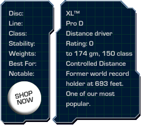 The XL™ is one of the farthest flying discs ever made, and is hugely popular with new players. Easy to control, and holds an almost perfect line on big throws. Former world distance record holder of 693 feet.